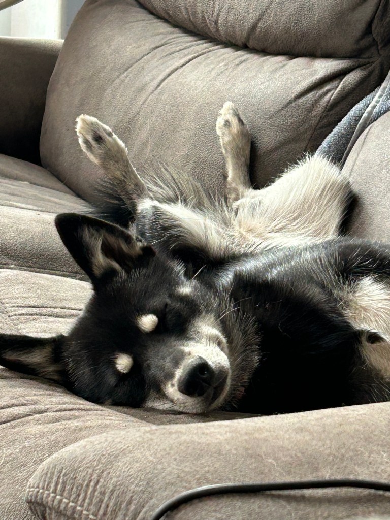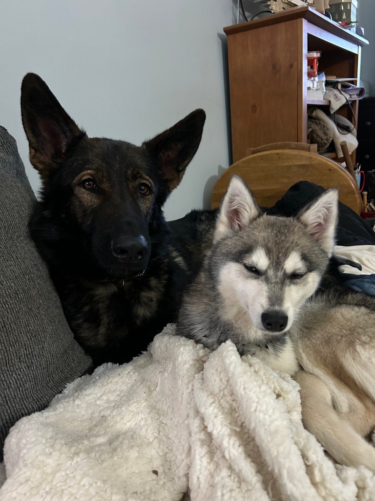 I like to ski and ride my bike, but I am by no means an athlete. We also like to get out and walk the dogs at Edworthy off leash. We have to take them out in shifts though because the two bigger shepherds are quite the handful. The three little ones are Alaskan Klee Kais and they have all the attitude and noise of a husky but compacted down.